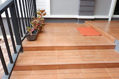 หน้าบ้านมีเฉลียงขนาดพอเหมาะ ปูพื้นกระเบื้องลายไม้สีเข้มเพื่อความสะดวกในการทำความสะอาด เป็นอีกหนึ่งมุมพักผ่อนนั่งรับลมนอกบ้าน โดยมีหลังคาช่วยป้องกันแดดและฝน